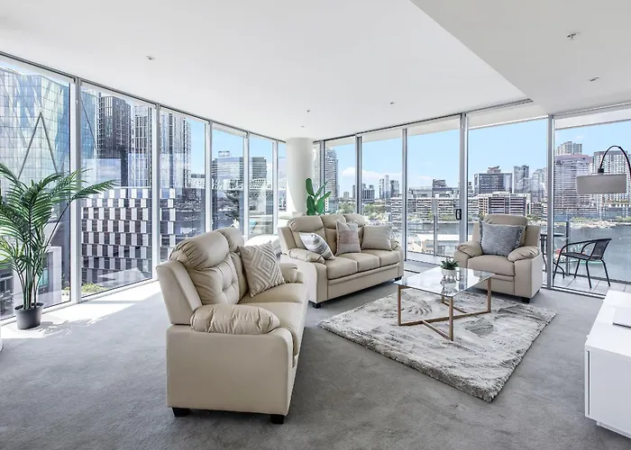 Le domicile de 158 m² est situé dans le quartier "central des affaires de Melbourne", à 17 minutes en voiture de l'aéroport d'Essendon. Le Musée hellénique est situé à quelques minutes de route de cet immeuble. La Grande roue Melbourne Star Observation Wheel se trouvent juste à côté des propriétés Appartement Waterfront View Luxury Escape 3BR Pool, Sauna, Gym.